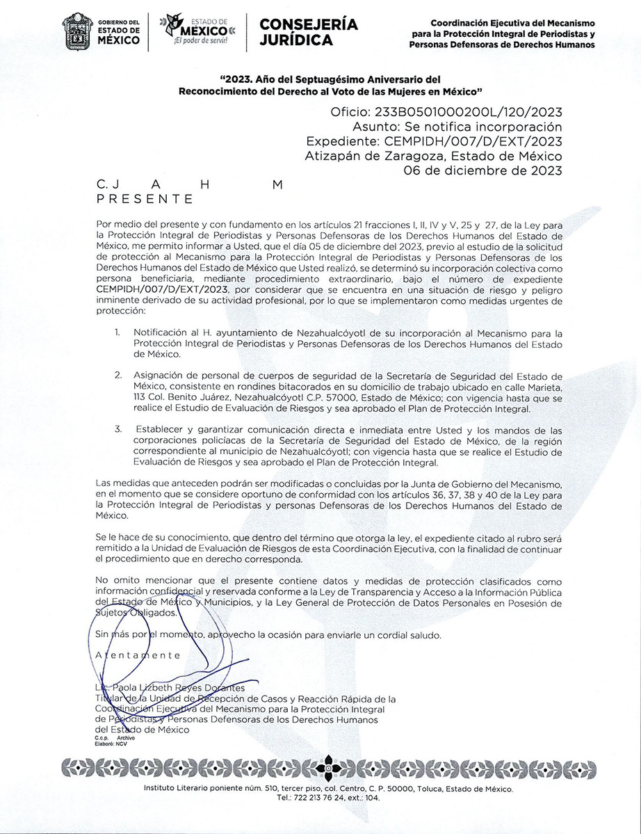 Mecanismo para la Protección Integral de Periodistas y Personas Defensoras de los Derechos Humanos
